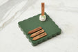 Square Scalloped Cheese Board with Cheese Markers, Small, Spruce Green