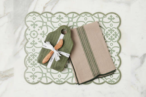 Square Scalloped Cheese Board with Cheese Markers, Small, Spruce Green