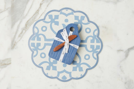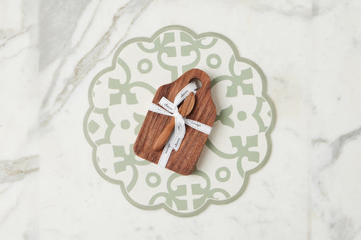 Square Scalloped Cheese Board with Spreader, Small, Natural