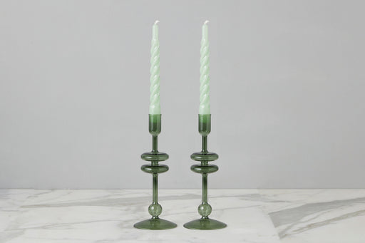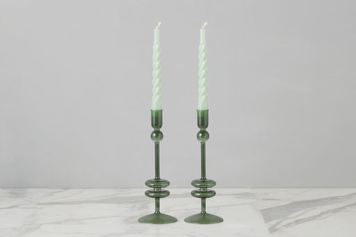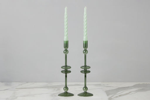 Elevate your home decor with a pair of Emerald Glass Candlesticks. These expertly crafted taper candle holders add a touch of timeless elegance to ...