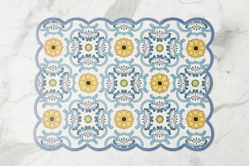 Scalloped Placemat, Rectangle, Denim and Yellow