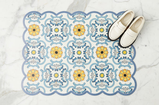 Scalloped Floor Mat, Rectangle, Denim and Yellow (24" x 32")