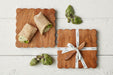 Square Scalloped Cheese Board with Spreader, Small, Natural
