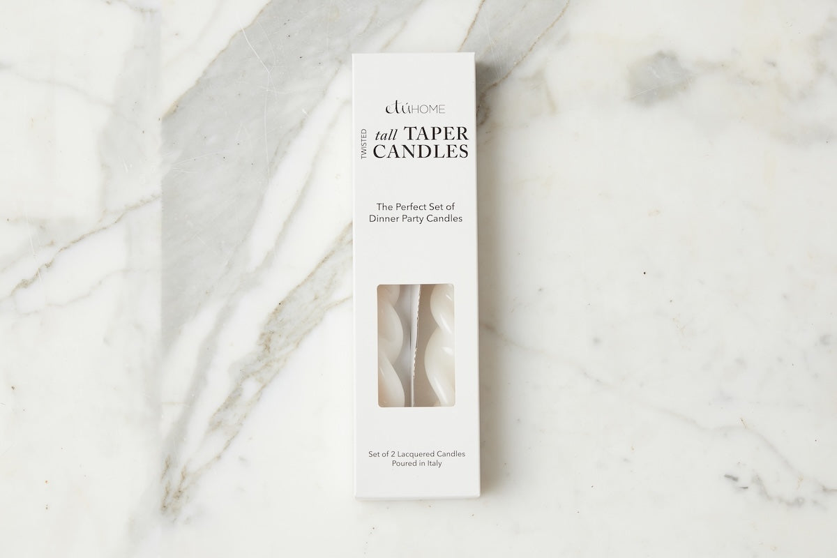 Elevate everyday moments with our Signature Twisted Taper Candles — a timeless symbol of elegance and ambiance. Tall, sculptural, and lacquered to a refined sheen, these candles are as beautiful unlit as they are glowing.