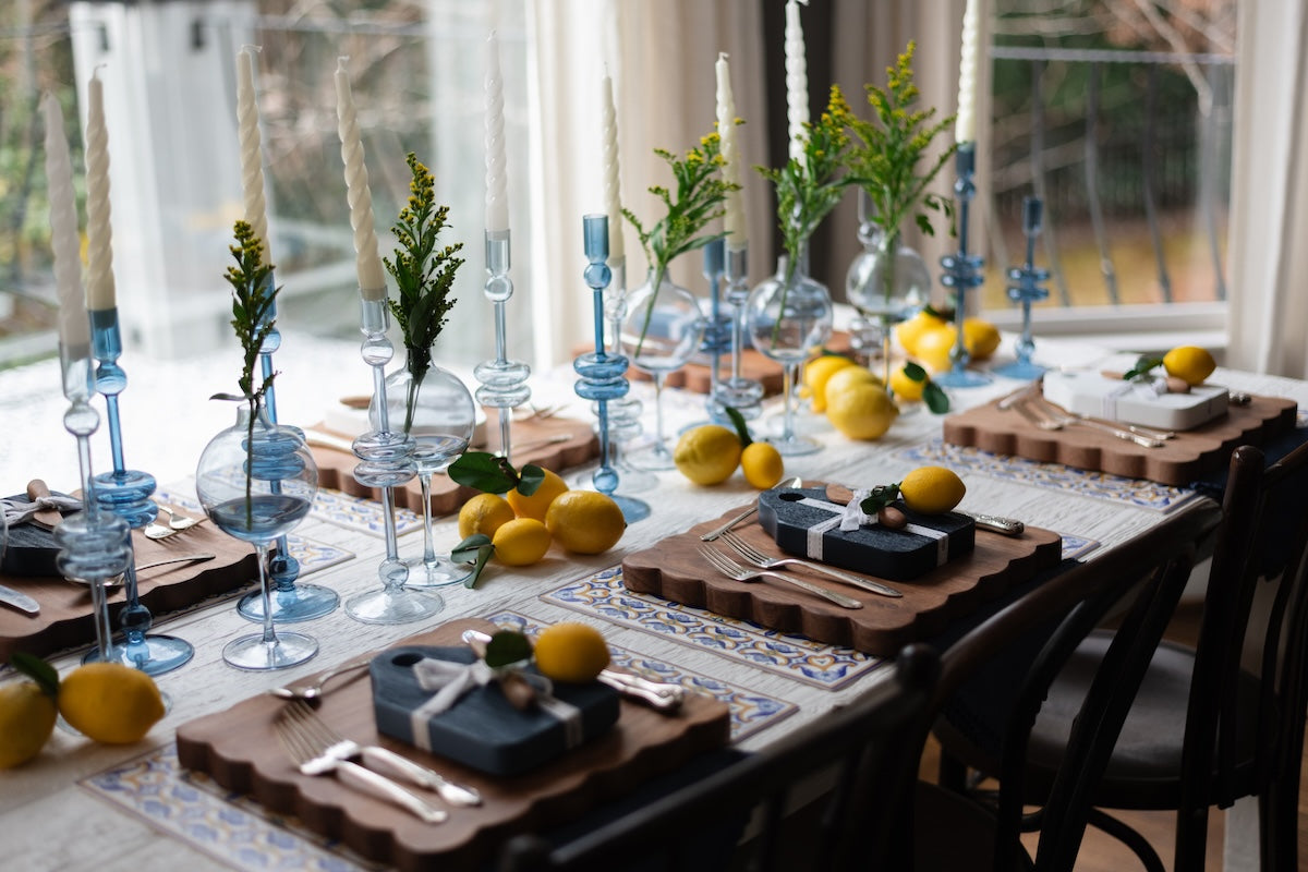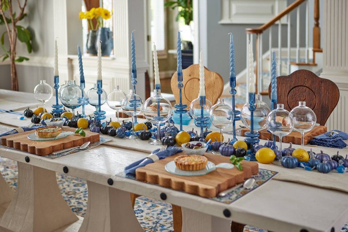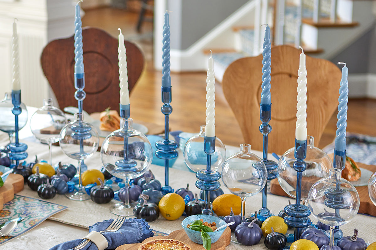 Elevate your home decor with a pair of Sapphire Glass Candlesticks. These expertly crafted taper candle holders add a touch of timeless elegance to any room. Available in three sizes and colors, they are perfect for adding a pop of color to your dinner party or creating a statement throughout your home. Mix and match the sizes and colors to create a memorable tablescape.